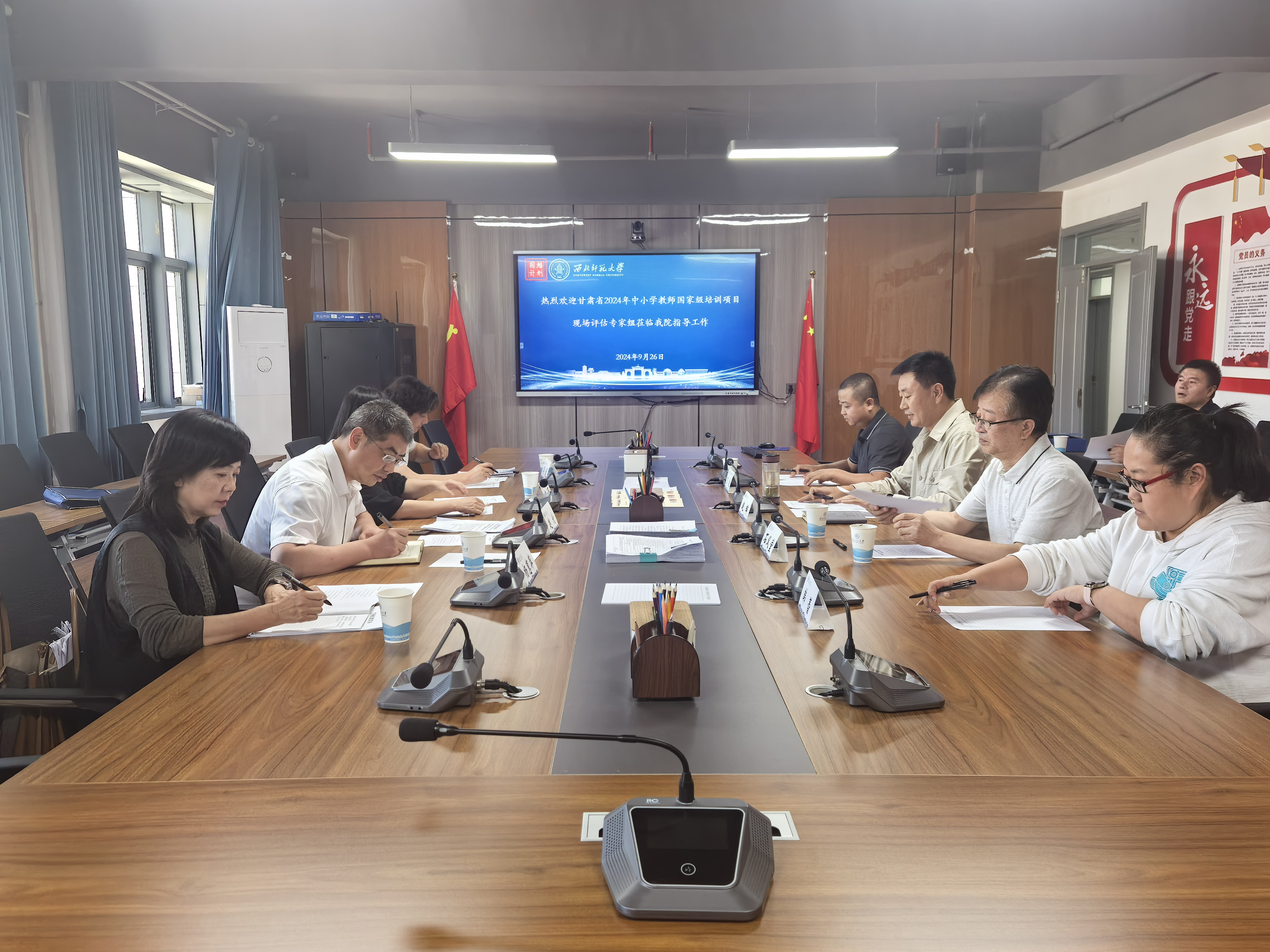 赵欣传达并解读了甘肃省教育厅对于2024年甘肃省中小学幼儿园教师国家级、省级培训项目第三方监测评估工作的相关要求,并对本次现场评估的工作内容及环节进行了简要介绍。