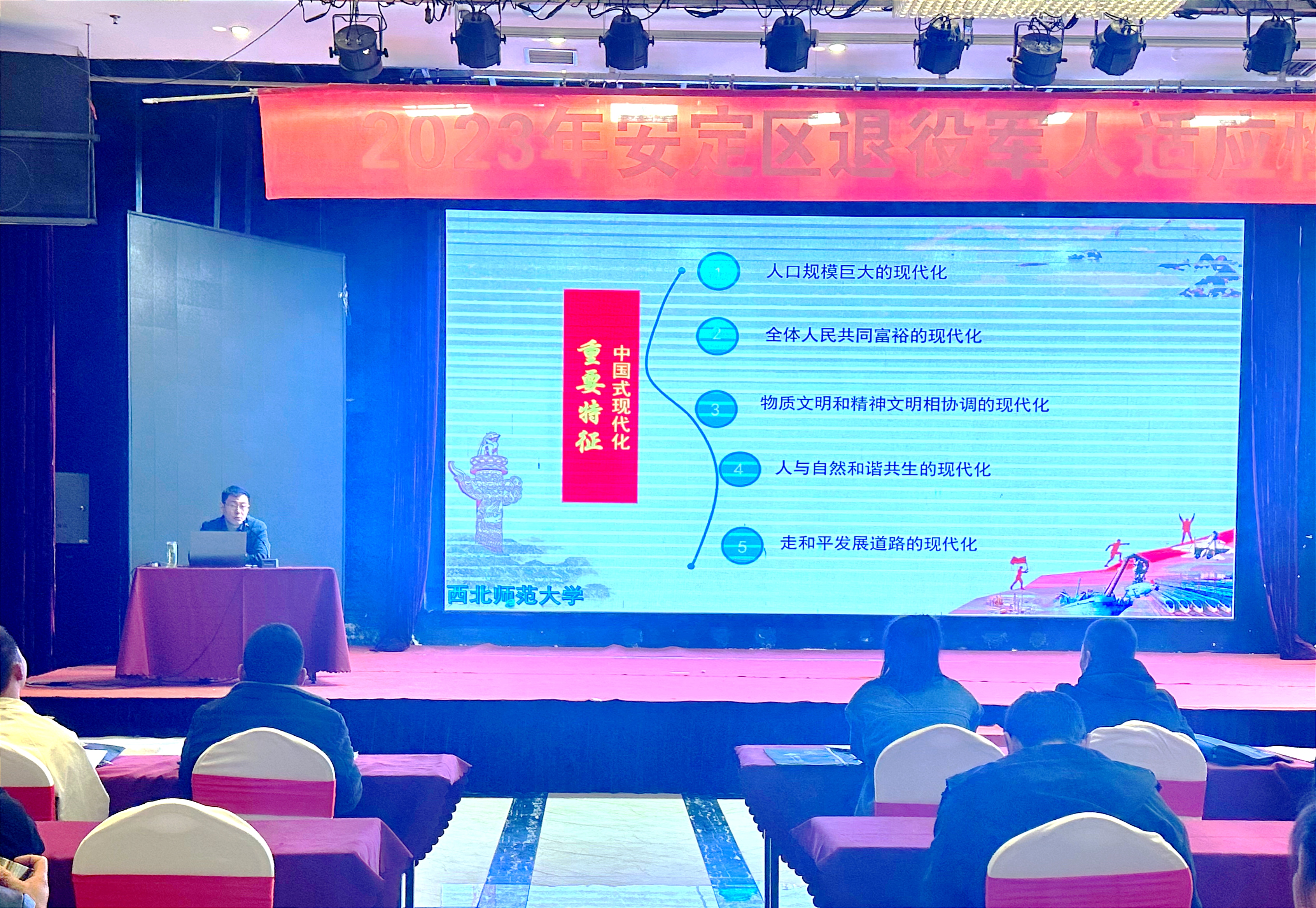 11月21日,由西北师大继续教育学院(甘肃退役军人培训学院)承办的2023年定西安定区退役军人适应性培训班在定西开班。安定区退役军人事务局党组成员、副局长康东、安定区退役军人事务局副局长梁建国、3044am永利集团3044noc马克思主义学院副院长王树亮、3044am永利集团3044noc继续教育学院社会培训中心主任杨世春、项目负责人罗振文参加开班仪式。