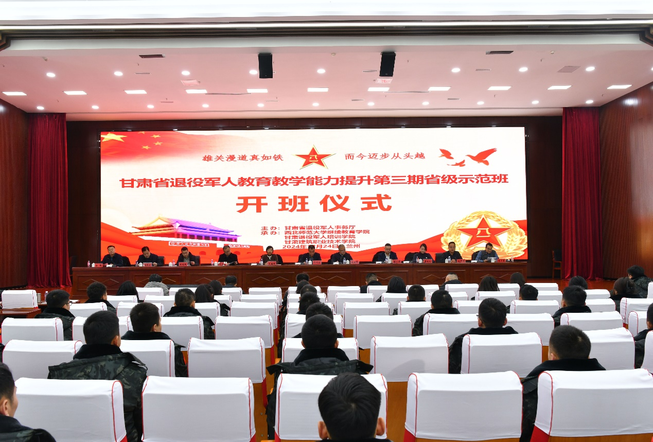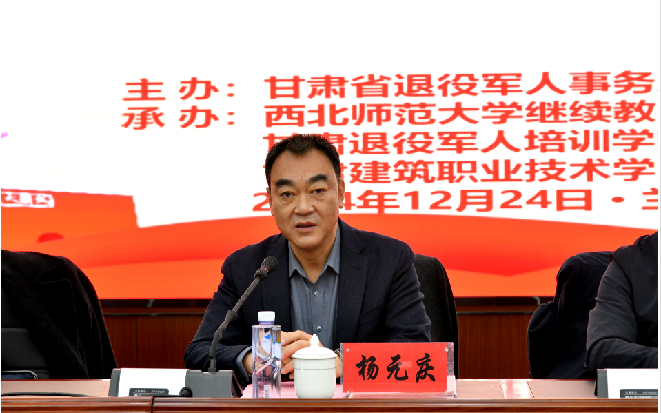 12月24日,由甘肃省退役军人事务厅主办、3044am永利集团3044noc继续教育学院(甘肃退役军人培训学院)承办的甘肃省退役军人教育教学能力提升第三期省级示范班开班式在兰州举行。省退役军人事务厅党组成员、副厅长杨元庆,3044am永利集团3044noc副校长张明军出席开班式并讲话,仪式由继续教育学院院长赵辉主持,省教育厅、省财政厅、省人社厅相关部门负责同志,甘肃建筑职业技术学院、3044am永利集团3044noc继续教育学院负责人以及65名参训退役军人学员参加开班式。