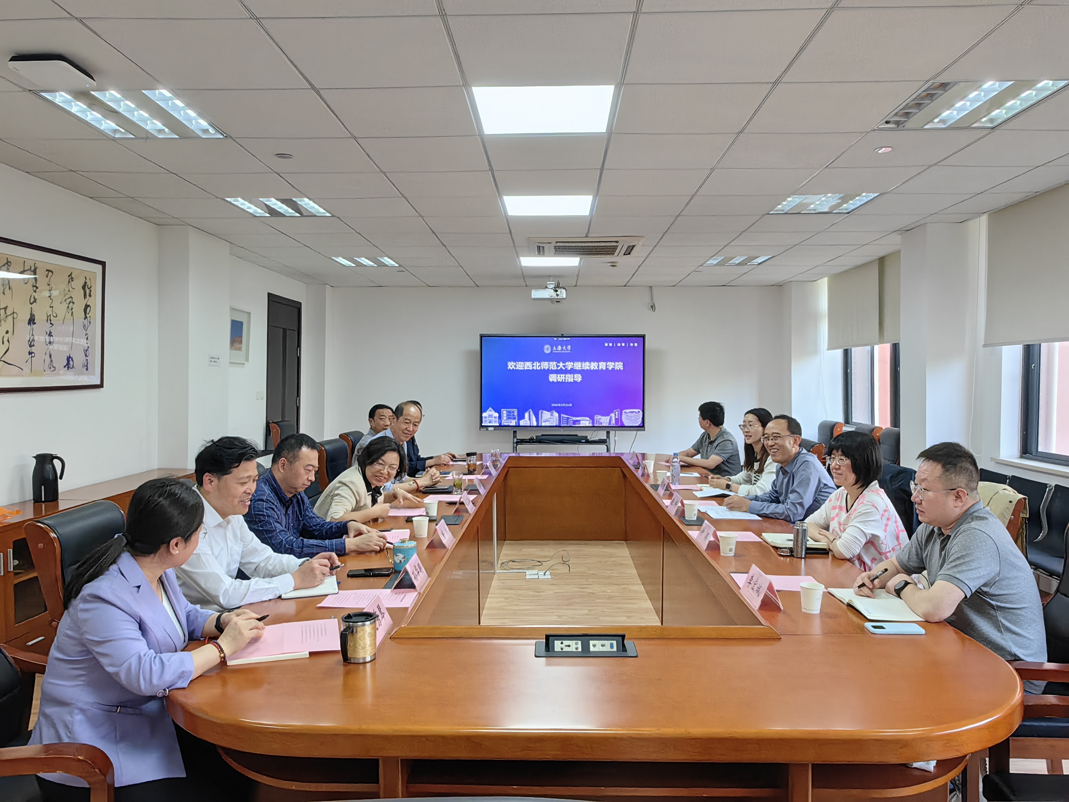 为进一步推动继续教育高质量发展,学习兄弟高校先进的办学理念和办学方法,3月26日,由继续教育学院党委书记陈科带队,学院学历和学位教育中心、师资培训中心、综合办公室组成的调研组一行5人,赴上海大学继续教育学院调研交流。上海大学继续教育学院院长周丽昀、副院长房林、王惠珏、培训部主任孙华明、自考办主任周久桃、学历教育办公室赵秀琴、学院办公室赵勇参加座谈交流。