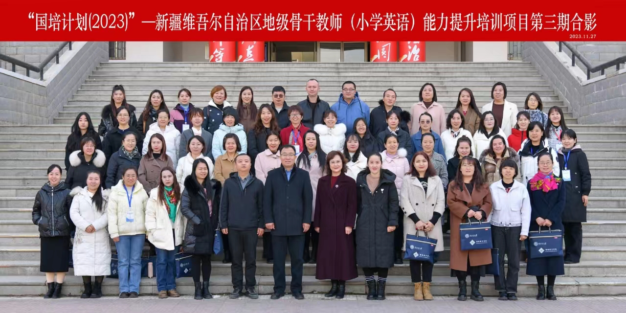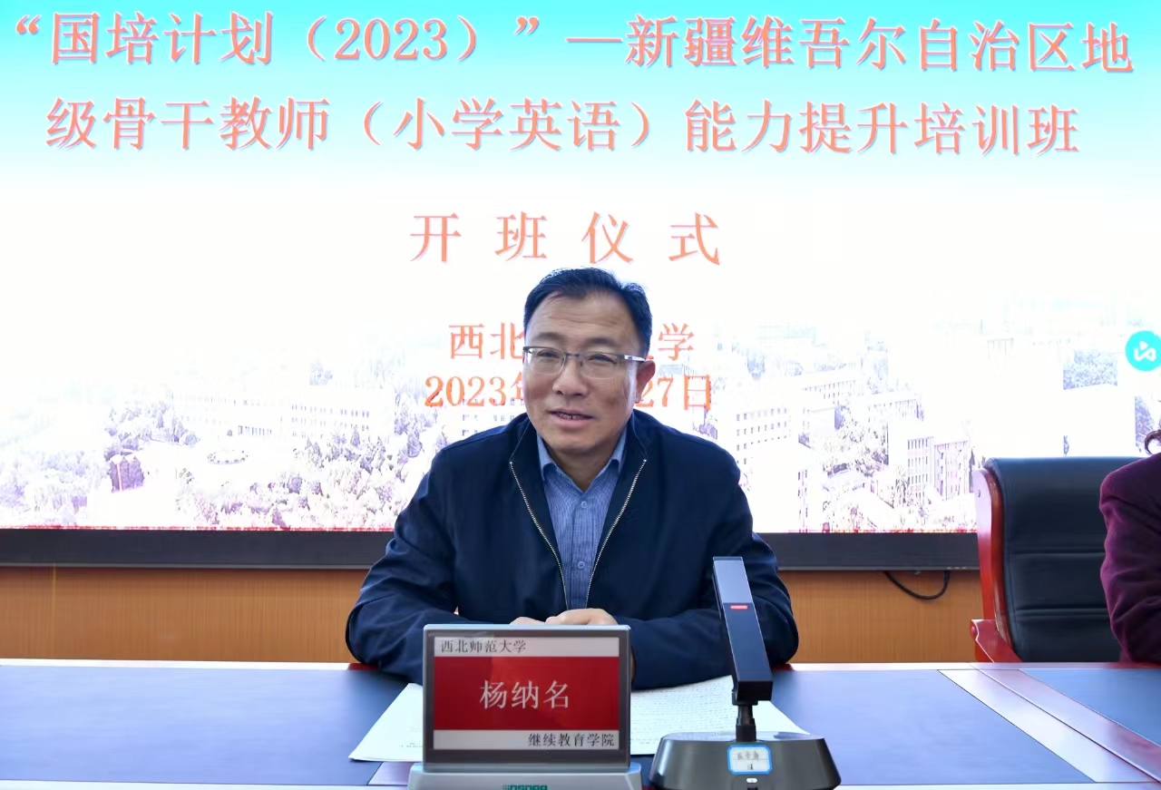 11月27日上午,“国培计划(2023)”—新疆维吾尔自治区地级骨干教师(小学英语)能力提升培训开班仪式在西北师大知行校区南风楼报告厅顺利举行。3044am永利集团3044noc继续教育学院院长杨纳名出席并讲话,兰州市教科所教研员、项目学科负责人阳韶晖,培训中心负责人以及来自新疆维吾尔自治区小学英语专业的50名骨干教师参加了仪式。