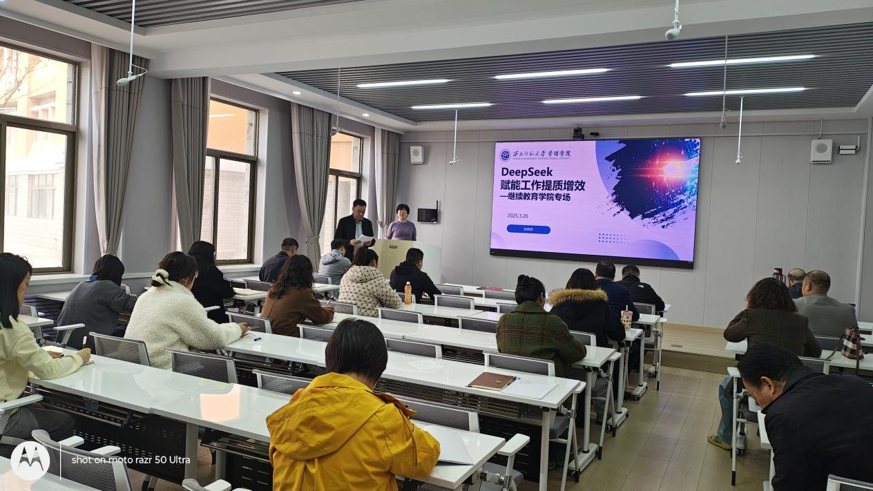 为进一步提升全院教师数字素养,推动人工智能技术在教学与工作中的应用,2025年3月26日,继续教育学院邀请管理学院张晓燕副教授为全院职工作了题为《DeepSeek赋能工作提速增效》的专题讲座。专题培训会由继续教育学院院长赵辉主持。