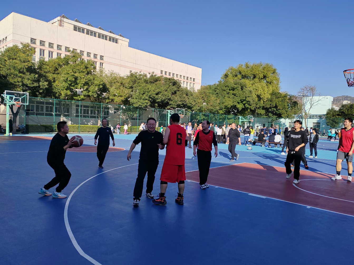 本届教职工篮球赛10月9日开赛。为了丰富校教职工业余体育活动,推动全民健身运动的开展,继续教育学院组建男队和女队各一支队伍参加全校比赛。开赛以来,参赛队员秉承友谊第一、比赛第二的宗旨,认真对待每一场比赛,团结拼搏、积极应对,不仅体现了队员们的拼搏精神,更能彰显出队员之间的团结协作关系,也增强了队员的健康意识。全体队员用汗水和协作演绎出团结的氛围和向上的力量,展现了继续教育学院良好的精神风貌。