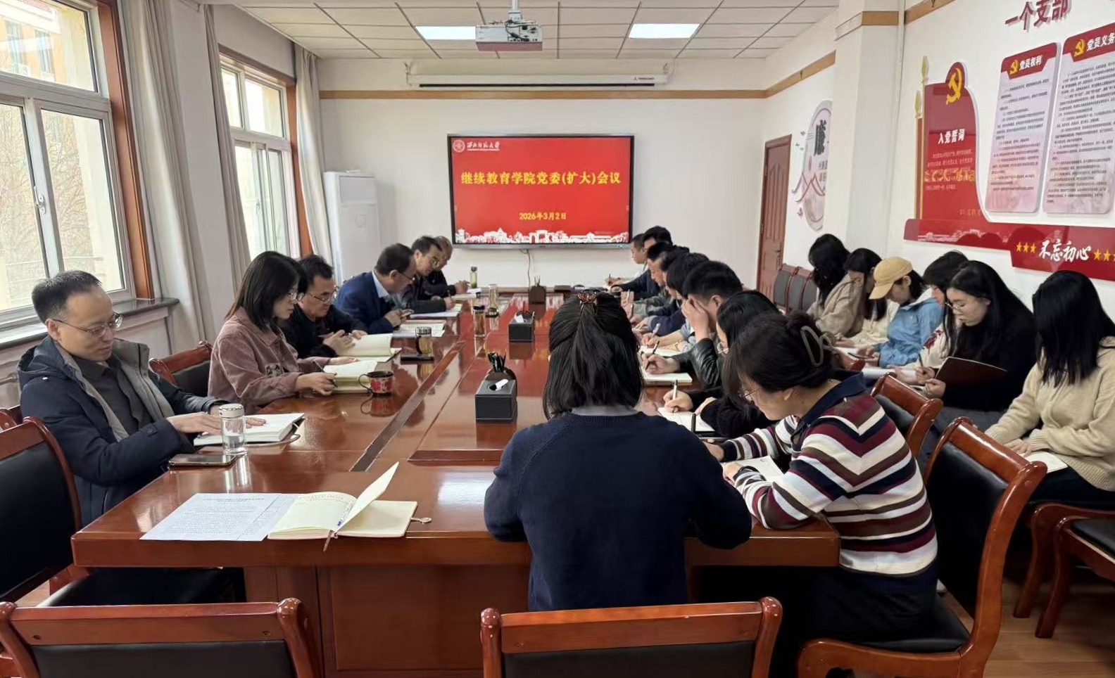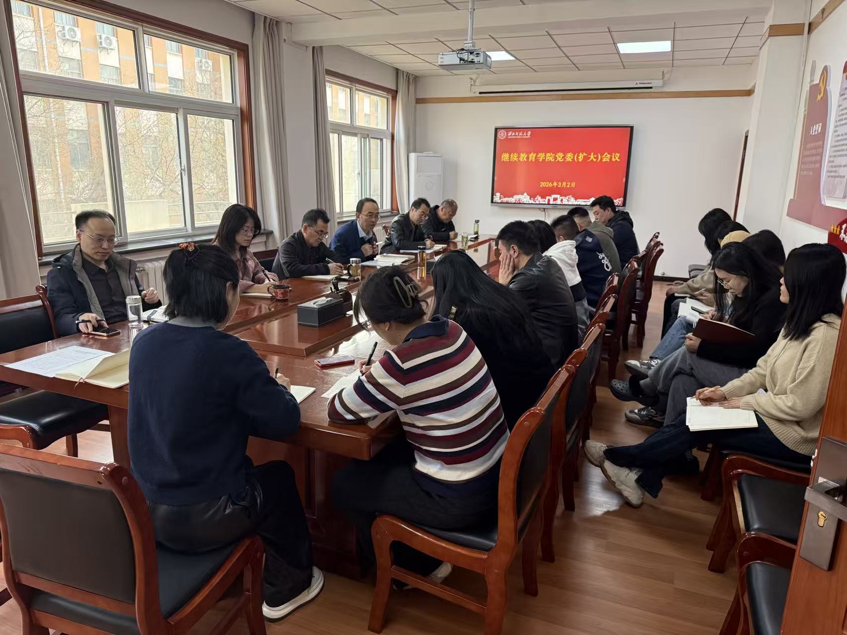 3月2日,继续教育学院召开党委(扩大)会议,认真学习贯彻习近平总书记关于树立和践行正确政绩观学习教育的重要讲话和重要指示精神,传达学习学校党委关于开展树立和践行正确政绩观学习教育的会议精神,部署启动树立和践行正确政绩观学习教育。党委书记陈科主持会议,学院领导班子及全体党员参加会议。
