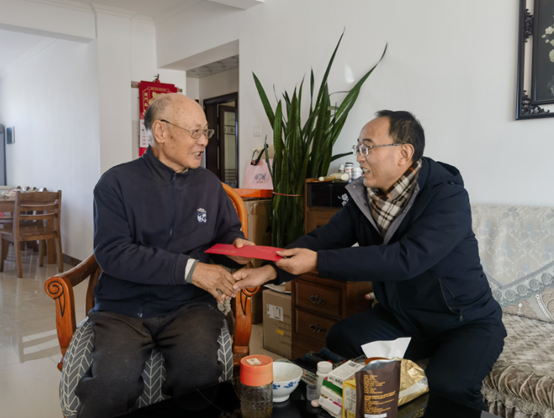 1月14日,在新春佳节来临之际,学院党委书记陈科带领综合办公室开展走访慰问活动,看望慰问学院离退休教师、生活困难党员(群众)、老党员、老干部,为他们送去学校和学院的关心和温暖,并致以春节的问候和美好的祝福。