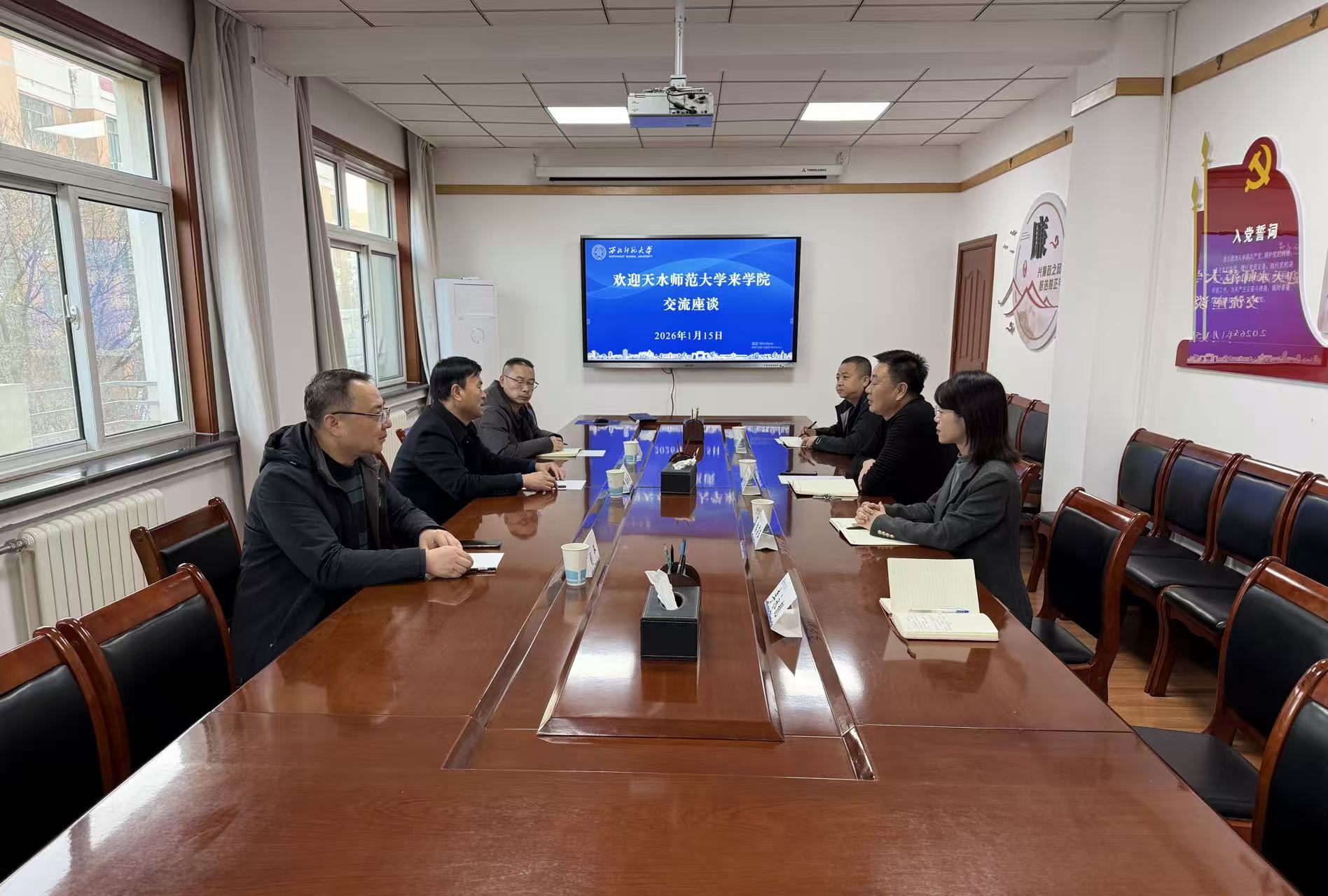 2026年1月15日上午,天水师范大学继续教育学院院长雒曲波、继续教育学院副院长胡平、继续教育学院培训部主任彭燕伟一行赴学院开展师资培训工作座谈交流。继续教育学院院长赵辉、副院长郭莉萍及相关科室负责人参加座谈会。