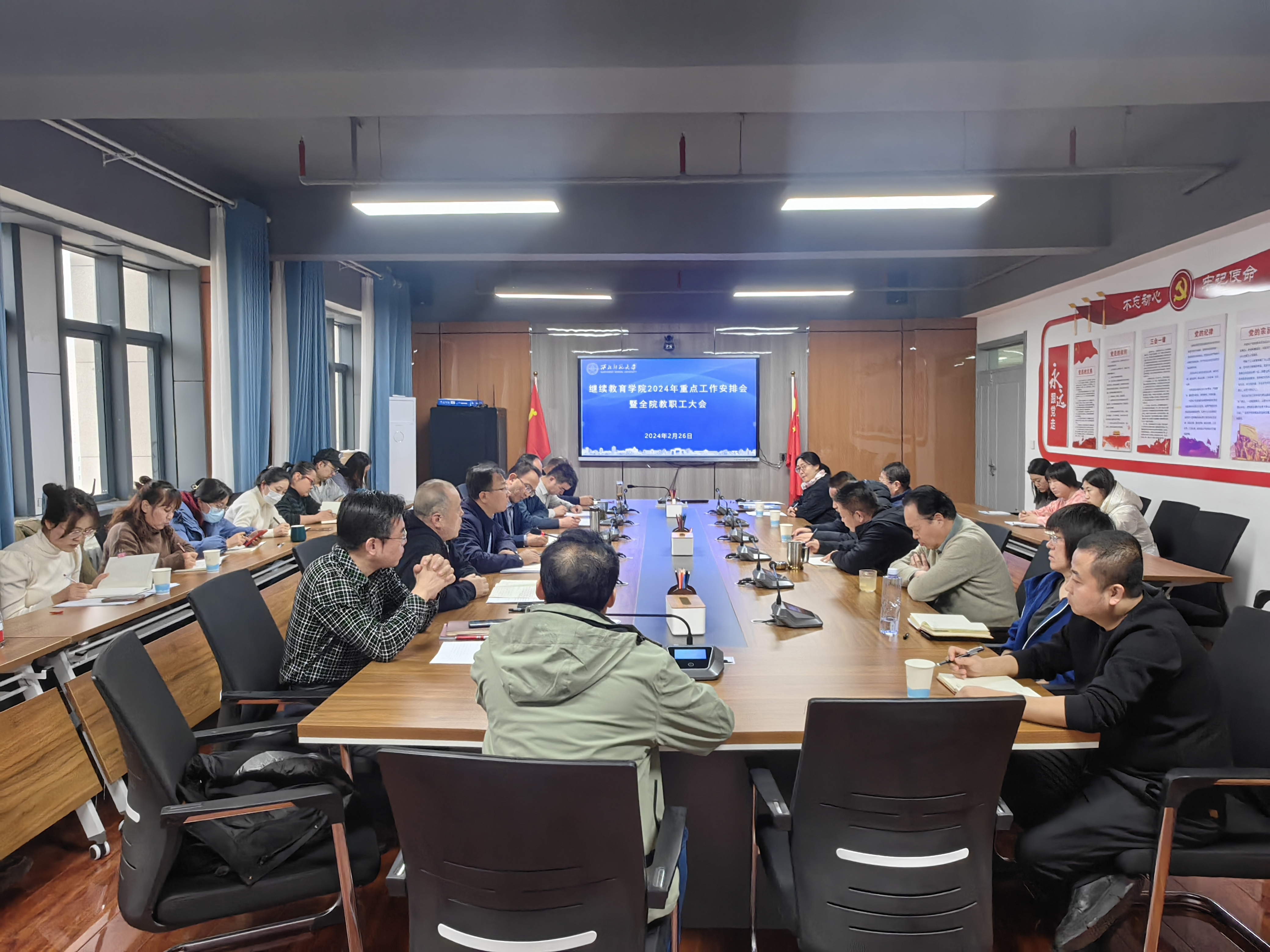2月26日下午,继续教育学院召开全院教职工大会,总结学院2024年寒假工作,安排部署2024年重点工作。学院领导班子成员、全体教职工参加会议,院长杨纳名主持会议。