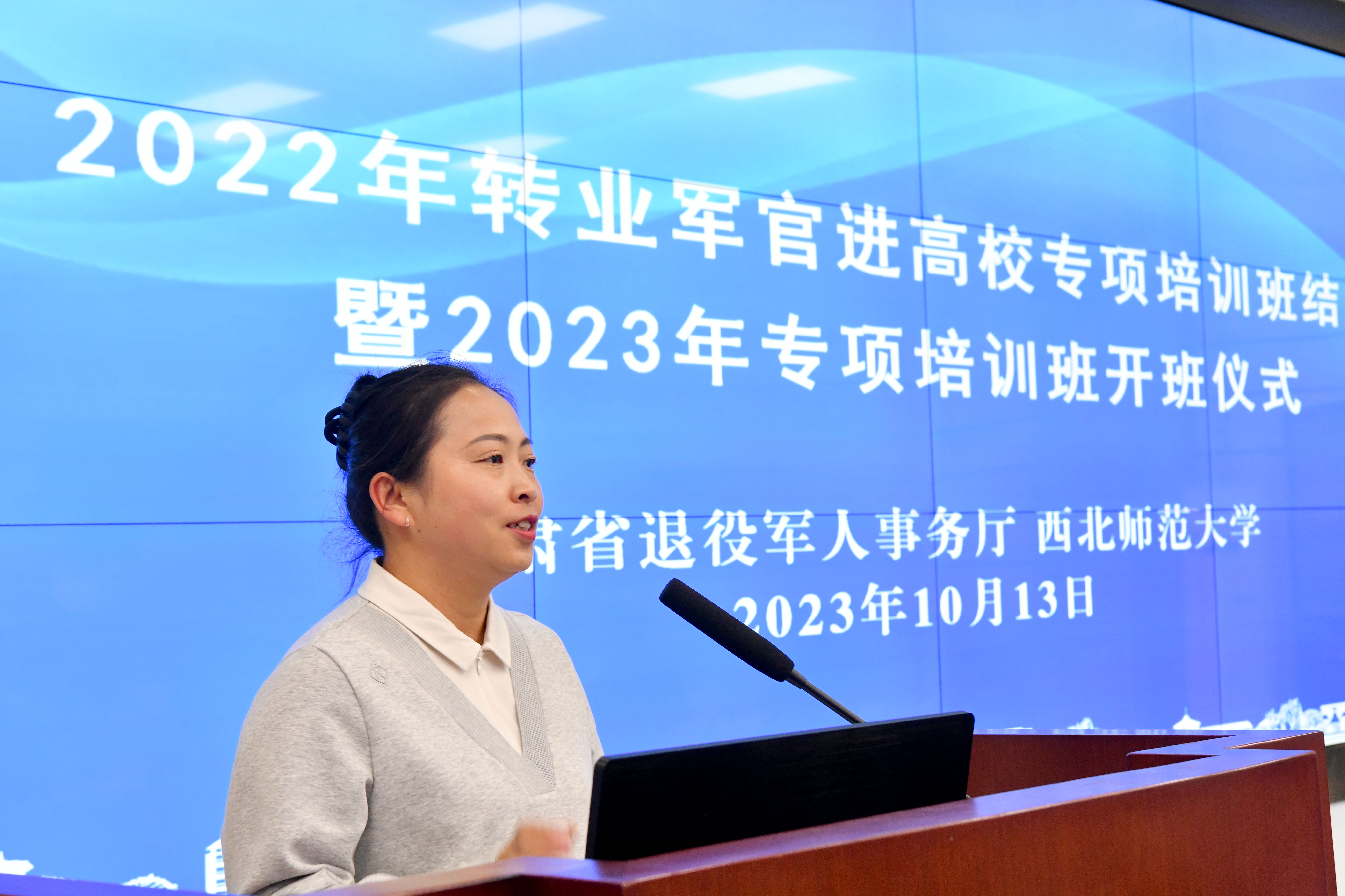 张明军在致辞中表示,学校与省退役军人事务厅有着良好的合作基础,在2020年双方合作成立了“甘肃退役军人培训学院”,开展适应性训练、学历升级教育和职业技能培训,切实提升退役军人就业创业的核心竞争力,全面提高退役军人专业素养和就业能力。其中,学校承接转业军官进高校专项培训工作以来,已经开展了4期培训班,累计培训学员89名,培训效果良好达到了预期培养目标。并通过其他各类继续教育培训退役军人400余人。今后,学校将继续与省退役军人事务厅开展深度合作,加大政策宣传力度、加强现有培训课程建设、完善课程质量管理体系、丰富培训内容方式,建设高质量的退役军人培训服务平台,为我省退役军人事业的发展作出西北师大贡献。